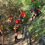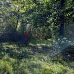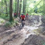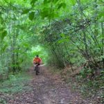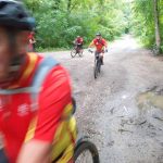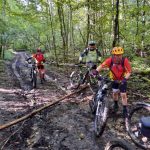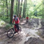 J’y vais ou j’y vais pas. C’est également quatre de mes camarades qui se sont dit la même chose en ce beau matin pluvieux. Allez, on est optimistes car après la pluie, le beau temps. On commence par la « tranchée du Chêne Bocquet » histoire de rouler sur du chemin blanc. Celui qui contourne la ferme des Gimeys est toujours aussi merdique. Pas grave on reprend ensuite du chemin blanc pour passer au lieudit de « la Femme Morte ». Décidément il y a beaucoup d’endroits dans la région qui portent ce nom… Le chemin de la Femme Tuée par exemple. Devant Ste Anne on bifurque à droite pour passer près de l’aérodrome de Pont St Vincent, puis un single bien sympa pour rejoindre Sexey. S’ensuit une sévère montée par un étroit sentier, occulté par votre narrateur (pas folle la guêpe) et on se retrouve en haut de Sexey, pour la suite dans la « grande tranchée des Gimeys » et le « chemin de Briffovaux. On passe le barrage de Villey et terminons par le chemin des grottes au bout de 34 km et 523 m de dénivelé, et avec le soleil revenu…
