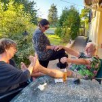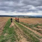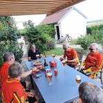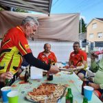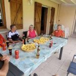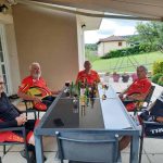 Sept ce matin à Bicqueley, c’est pas mal par ces temps de vacances pour certains. C’est parti par la « côte d’Ochey puis le « chemin des bœufs », après l’ancien terrain de foot de Moutrot, nous longeons le ruisseau du « chahalot » il n’y avait pas de cachalot!, pas assez d’eau dans le ruisseau, direction Allain par le « vau de la tournepierre », serait- ce un parcours gastronomique car nous sommes dans le »fond de vau » puis dans le « vau leclerc », c’est la que nous devons bifurquer à droite, Jean Marie et Michel suivent le tracé prévu, et le reste de la troupe me suit, croyant faire un raccourci, mal nous en a pris, car le chemin se termine en queue de poisson..(quand je vous disait qu’on était en pleine gastronomie), on galère quelque peu pour enfin retrouver un chemin carrossable et poursuivre avec le groupe reconstitué, le bois de « la champelle » sera vite avalé, pour longer la base 133, nous suivons un chemin bien sympa, au lieu dit « le bois du manteau rouge », avant d’arriver au terme de notre sortie de 36 km et 499m de dénivelé, notre »foodtruck » nous attendait pour le traditionnel débrief.