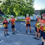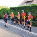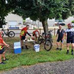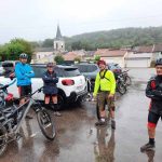 Incroyable, ce matin, le beau temps est au rendez vous comme huit vététistes et pourtant c’était pas gagné car il flottait encore vers 4 heures du mat, c’était le reste de la cérémonie des JO. On s’élance vers les bas fonds de Mont, et c’est à ce moment qu’arrive « les pros du club😂😛 » qui partent pour leur rando en vélo de route, salutations faites, nous rejoignons Blénod, les chemins sont bien mouillés, mais ce n’est rien, car la suite sera très et même très très boueux, on est le 28 juillet et non le 28 décembre, on arrive à Bulligny et avons une pensée pour notre ami Francis qui repose ici dans son cher village. On se dirige vers Crezilles et arrivons à la deuille du même nom et oh surprise, presque à sec … vraiment il y a un dérèglement climatique, le chemin qui nous mène à Bagneux sera bien merdique par endroit et la suite encore plus pour rallier Barisey par le bois de « charmonde », les vélos sont à bout de souffle, roues quasiment bloquées, la montée par un chemin inédit jusqu’au planétarium du Maurice va avoir raison du moral de la troupe, heureusement la descende vers le moulin du Michel, va nous redonner force et vigueur pour terminer notre périple suite à 38 kms et 600 m de dénivelé, nous avons débriefé cette matinée en compagnie d’Yves qui a été très content de retrouver les copains.